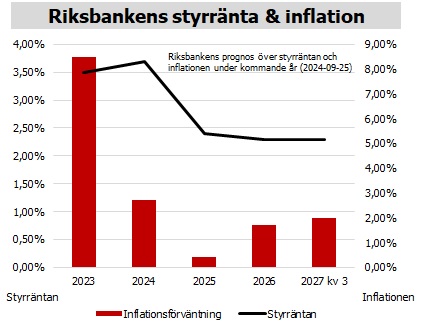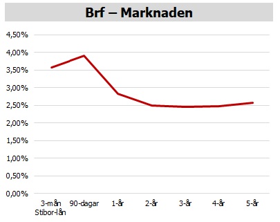 Riksbanken är tydlig i sin kommunikation om att styrräntan skall sänkas under det kommande året till runt 2,25%-2,5%. Det innebär lägre räntor för de som valt rörlig bindningstid. Räntekurvan är inverterad, med låga räntor på fasta löptider. Det innebär att det går att göra mycket bra längre räntebindningar.