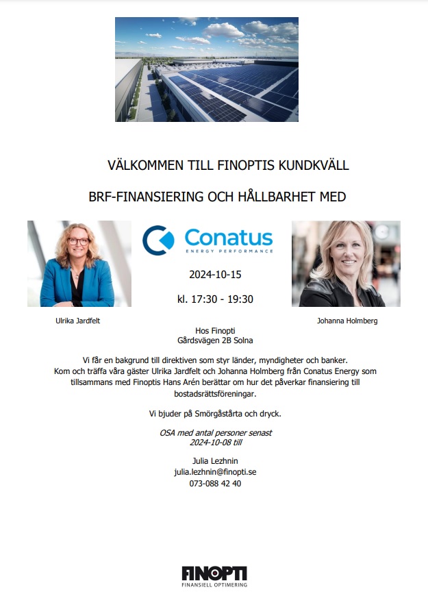 Hållbarhet blir allt viktigare och mer centralt i vårt samhälle. EU har skapat direktiv vilka reglerar att större bolag behöver redovisa sina koldioxidutsläpp och klimatavtryck. EU använder banksystemet för att styra hållbarhetsutvecklingen genom att banker behöver redovisa vad de använder sitt utlåningskapital till. Låntagare kommer att kategoriseras utifrån klimatpåverkan och bankens prissättning kommer att variera baserat på kundens klimatavtryck. Aktuella energideklarationer och certifieringar kommer att bli viktiga för bostadsrättsföreningar som vill ha bästa lånevillkor.