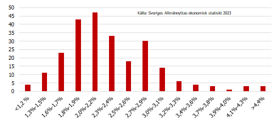 25 % av allmännyttans bolag gjorde förlust under 2023. Det är en hög siffra, och har sin grund i det högre ränteläget, vilket kraftigt ökat räntekostnader och tillsammans med betydande nedskrivningar av fastighetsvärden skapat stora förluster. Ett högre ränteläge ökar kraven på hantering av lån och räntor.